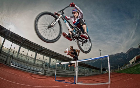 Trial Biken trifft Leichtathletik. 2013 stellt Tom Oehler mit “fastest 400m hurdles on a bicycle” seinen zweiten Weltrekord auf und gewinnt in einem Rennen über die 400-Meter-Hürden-Distanz gegen den damaligen Weltmeister dieser Disziplin, Felix Sanchez. Bereits im Jahr zuvor zeigt Tom Oehler vor einem Millionenpublikum im deutschen Fernsehen, wie der perfekte Bunny Hop auf der Tartanbahn funktioniert, und fordert bei der TV-Show „Wetten, dass…” den Deutschen Meister auf der 400 Meter Hürden Distanz, Georg Fleischhauer, heraus.